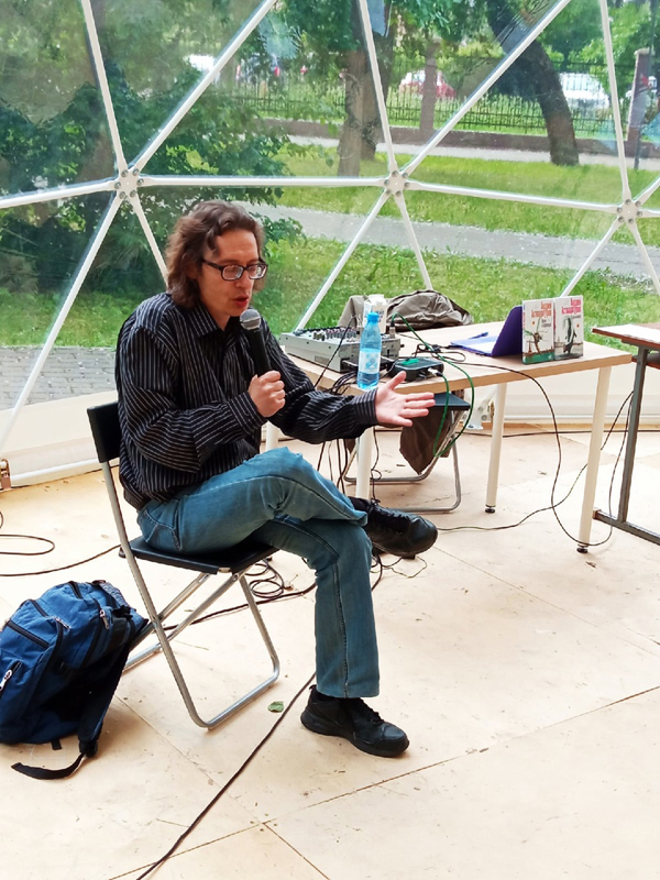 Побывал также на творческой встрече с Андреем Аствацатуровым. Серьëзный филолог, юмора показалось на встрече меньше, чем в его книгах.