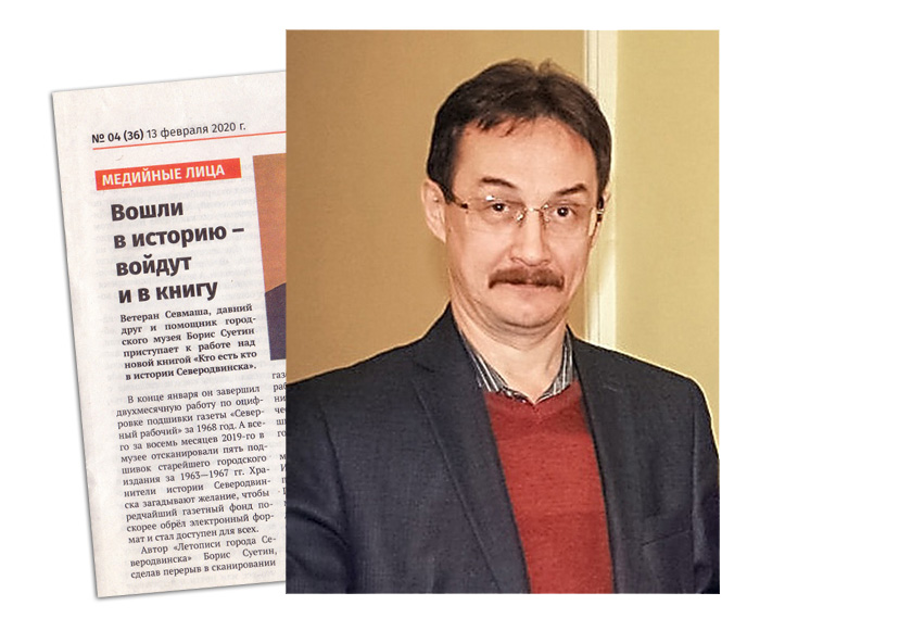 Автор «Летописи города Северодвинска» Борис Суетин, сделав перерыв в сканировании газетных полос, продолжает работу над будущим двухтомником, куда войдут биографические очерки о людях, оставивших свой след в истории нашего города.